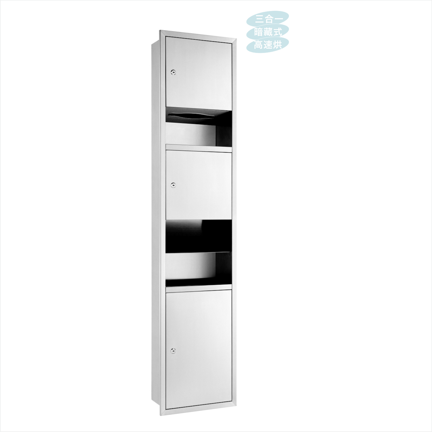 ◎入墻式安裝,充分釋放干手機(jī)、紙巾盒、垃圾桶擺放空間